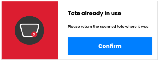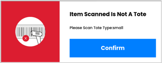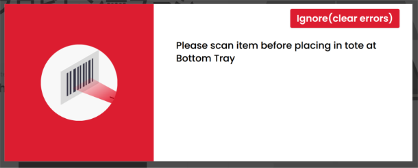 - Scan Error: Item placed in tote without completing the required scan; system blocks further steps until scanning is performed.