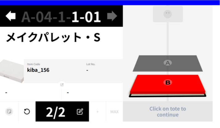 2. Tote Confirmation via UI Tap: A simple tap on the UI (“Click Tote”) confirms that the scanned tote has been placed in the correct tray position. It reinforces correct loading without interrupting workflow.
