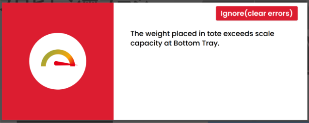 - Excess Error: Weight exceeds expected value beyond tolerance, indicating extra items placed in the tote.